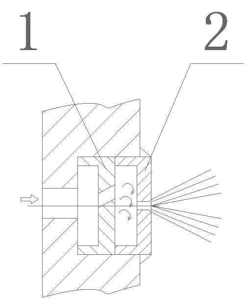 ● 如圖,水流通過設(shè)置在內(nèi)部的旋流裝置或稱旋流器(圖中編號1),在壓力推動下使水旋轉(zhuǎn)形成離心力,隨著一直進(jìn)行,在噴出口噴出時(shí)也保持這種狀態(tài),水被霧化打散,與蒸汽混合后迅速汽化,蒸汽被吸熱降溫。