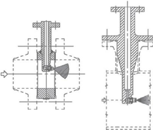 ● 設(shè)計(jì)型式:減溫水入口端與管道垂直(標(biāo)準(zhǔn)):鍛造一體式,帶螺紋連接、翼式墊片鎖定的噴嘴。減溫水入口端與管道平行(按需): 焊接機(jī)構(gòu), 由鍛造件或卷壓件焊接構(gòu)成 。